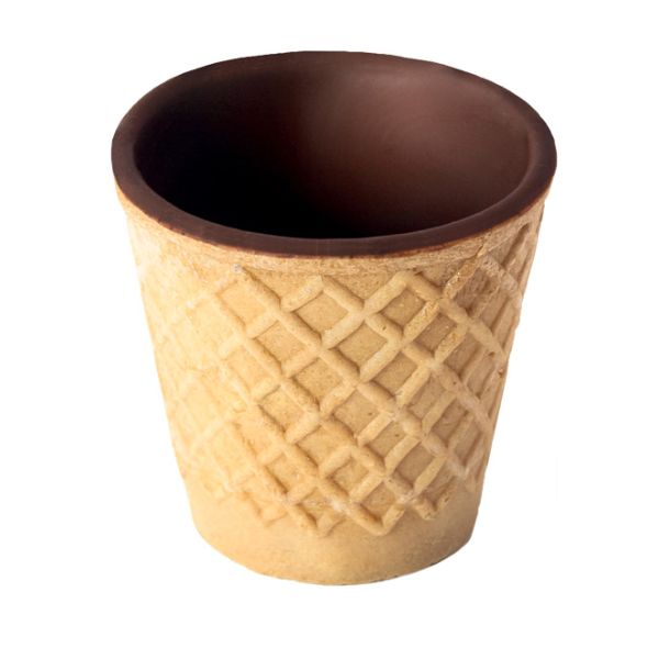 Questa cialda da 30 ml è un wafer (di tipo parigino) ricoperto di cioccolato fondente belga puro al 60%.